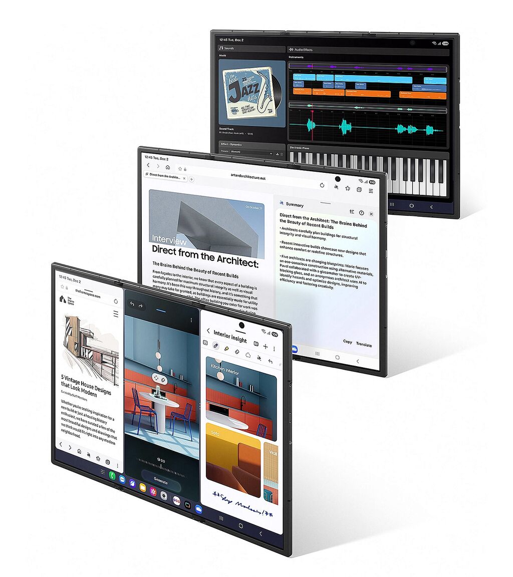 サムスン電子(Samsung Electronics)は、2回折りたたむことで10インチの大画面を利用できるスマートフォン「Galaxy Z TriFold」を発表した。