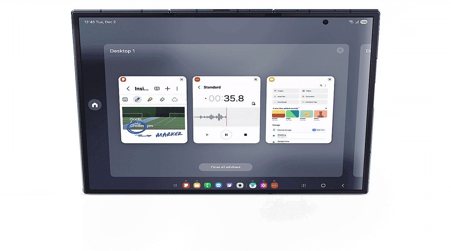 これにより、3つのアプリを同時に表示して作業するなど、パソコンのようなマルチタスク環境を実現する。