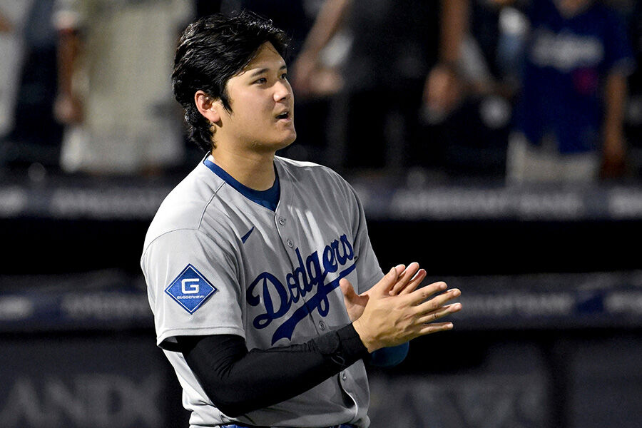 大谷は初回と四回の打席で先発ラスムセンから連続空振り三振を喫し、前日から4打席連続三振を記録した。3点を追う六回1死一塁の第3打席では代わったばかりの左腕クレビンジャーから右前打。続くフリーマンも右前打で1死満塁の絶好機をお膳立てしたが、4番T・ヘルナンデスが痛恨の遊撃併殺打で無得点に終わった。